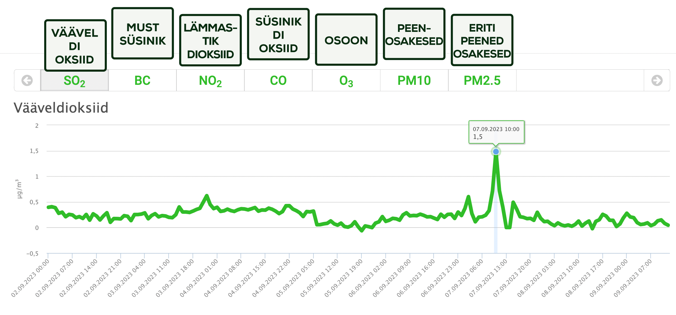 - vesiniksulfiid H2S (nt Tallinna Maardu seirejaam)