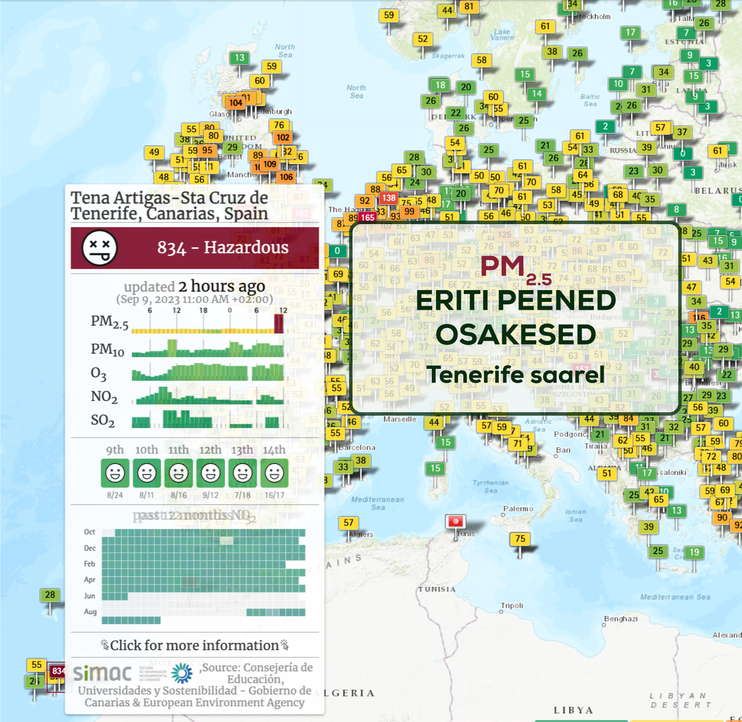 Eesti eri paikade õhusaastumist saab kontrollida ohuseire.ee veebis. Esmapilgul tundub kõik väga positiivne: peaaegu kõik lipukesed on rohelised. Ainsad alla keskmise tulemuse annavad Tallinna Maardu seirejaam ning Narva lähedal Sinimäe seirejaam. Kuna piirkondades on palju tööstushooneid, mis korstnate ja muu tootmisega heitgaase ja saastunud osakesi õhku lasevad, on tulemus loogiline ja mitte väga imekspandav.