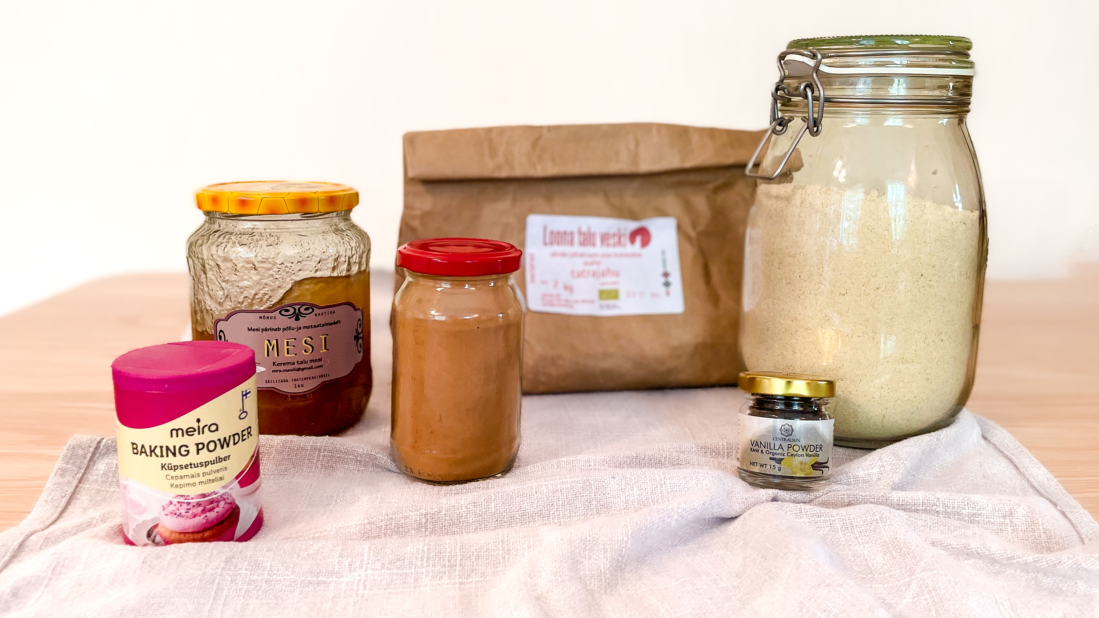 Mina ostan mandlijahu hinnaga 10.99€/kg Gemossi poest ja seda on võimalik soetada Sikupillis (Tallinn) kui ka e-poest tellides. Tatrajahu on eestimaine Loona talu veski hele tatrajahu. Kaneel on mahe tseiloni kaneel, mille ostmise valikuvõimalust jagasin eelmises postituses (Pehmed Belga vahvlid) ning maheda vanillipulbri kinkis ema.